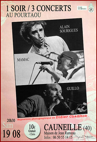 2017/08Présentation d’une partie de la série “ Safety “ lors de la soirée “ 1 soir / 3 concerts “ dans la grange de la maison Jean Rameau à Cauneille (40). Avec Alain Sourigues, Guillo et Mamac.Exposition du 19 août 2017
