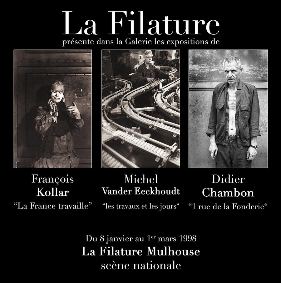 1998/01Exposition collective à la Filature Mulhouse (68) avec : François Kollar (portraitiste, mode) Michel Vanden Eeckhoudt (agence VU) sur le thème du “Monde du Travail“Exposition du 8 janvier au 1 mars 1998